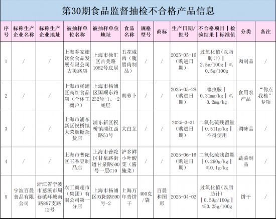 对上述抽检中发觉的不及格产物,市市场监管局已要求相关区市场监视办理局及时对不及格食物及其出产运营者进行查询拜访处置,依法查处违法行为,进一步督促运营者履行权利,并将相关环境记入食物出产运营者食物平安信用档案。查处环境由运营者所正在地担任案件查办的区市场监视办理局按公开。噻虫胺是一种高效的新烟碱类杀虫剂,普遍用于防治蚜虫、飞虱等害虫。部门农户为逃求杀虫结果,超剂量、导致农药正在做物中堆集,残留量容易超标。食用食物一般不会导致噻虫胺的急性中毒,但持久食用噻虫胺超标的食物,对人体健康也有必然影响。过氧化值次要反映食物中油脂能否氧化变质。油脂酸败变质可能会发生无害成分,食物养分,持久或过量摄入可能会惹起肠胃不适、腹泻等症状。过氧化值超标的缘由,或者产物正在储存过程中前提节制不妥;也可能是原猜中的脂肪曾经氧化,原料储存不妥。二氧化硫正在食物工业中既是漂白剂又是防腐剂,利用后均发生二氧化硫残留。少量二氧化硫进入人体一般不会对身体带来健康风险,但若持久过量食用二氧化硫残留超标的食物,可能会惹起如恶心、等肠道反映。出格提示消费者,如采办或正在市场上发觉附件所列的不及格食物时,请拨打食物平安赞扬举报电线进行赞扬举报。